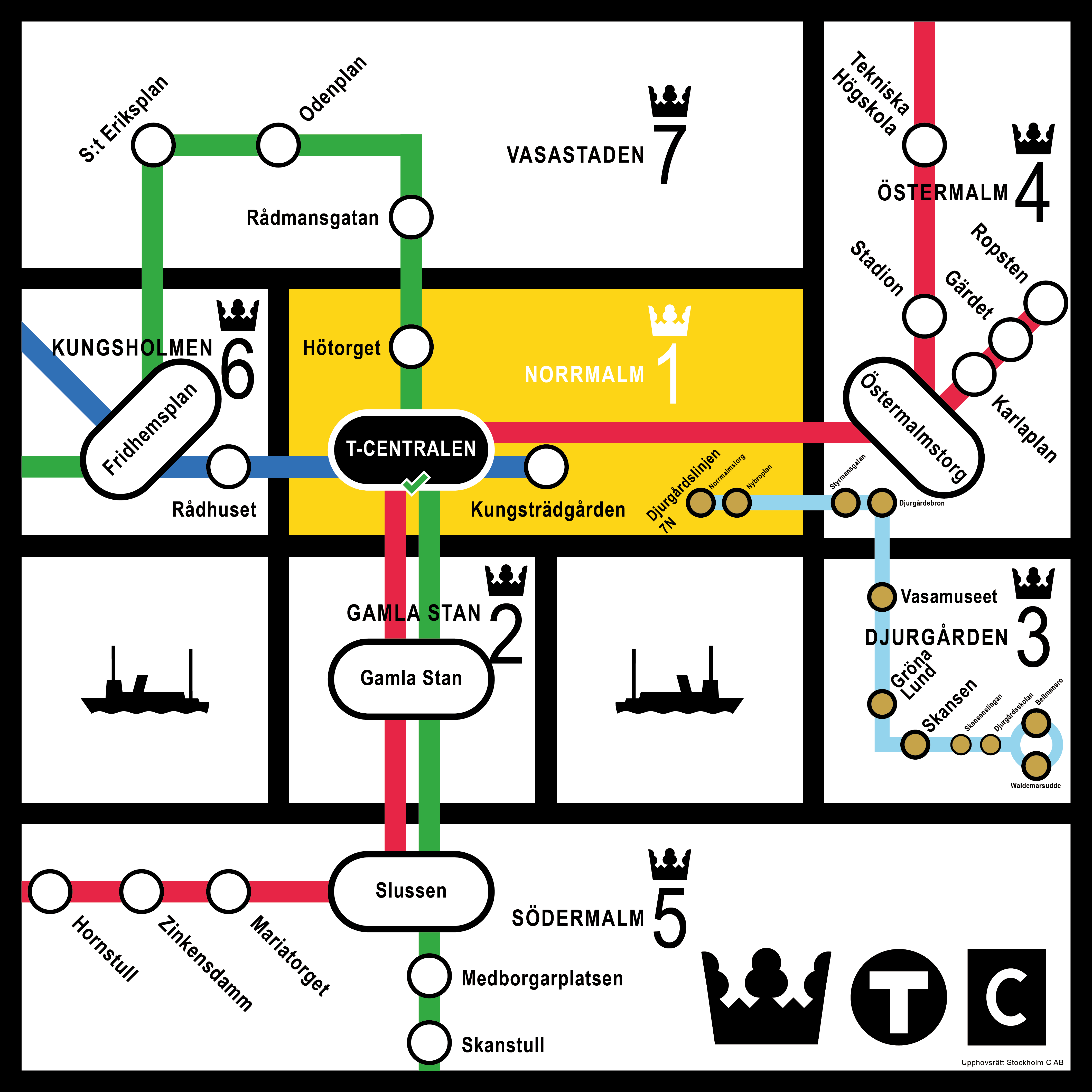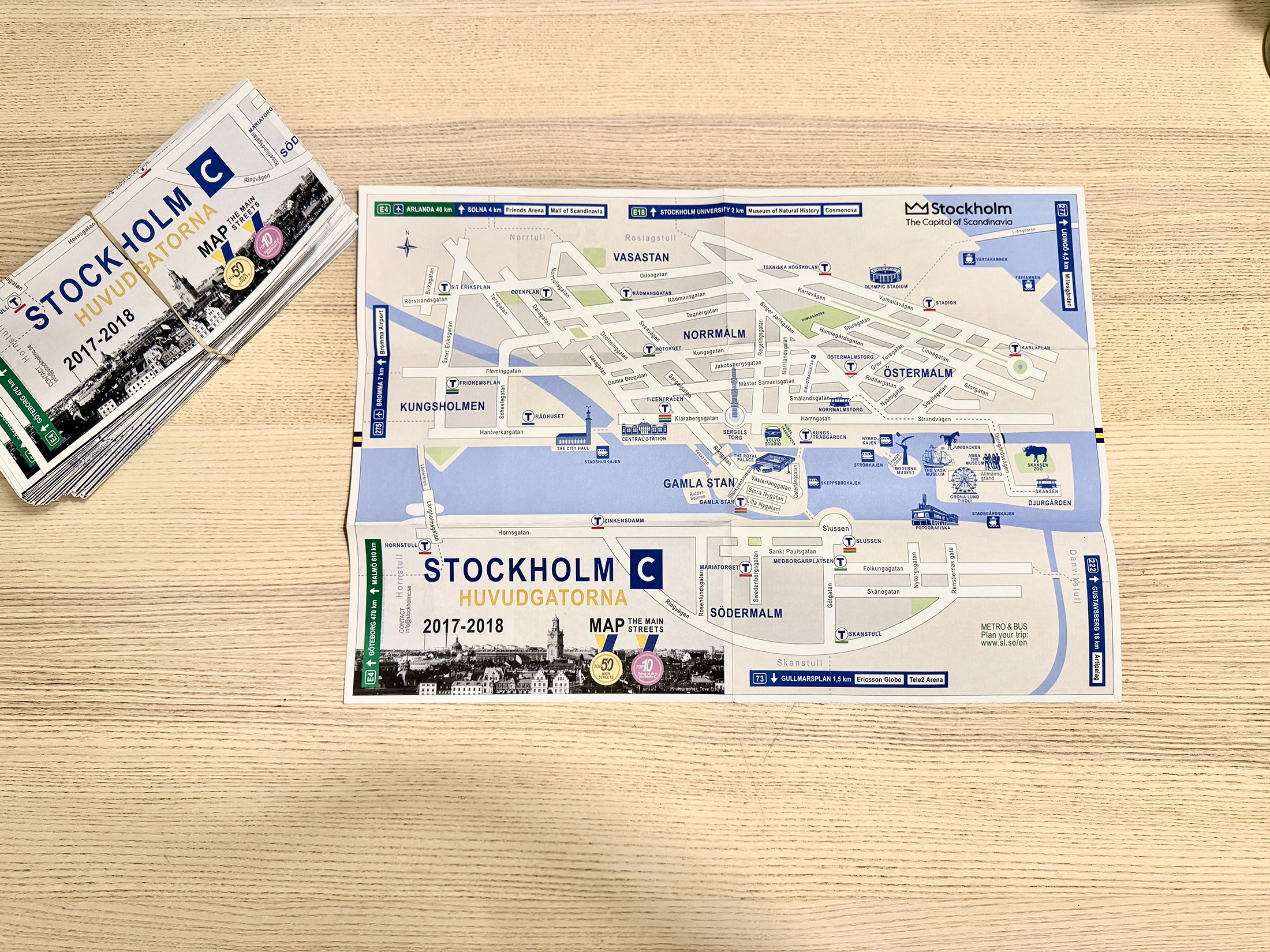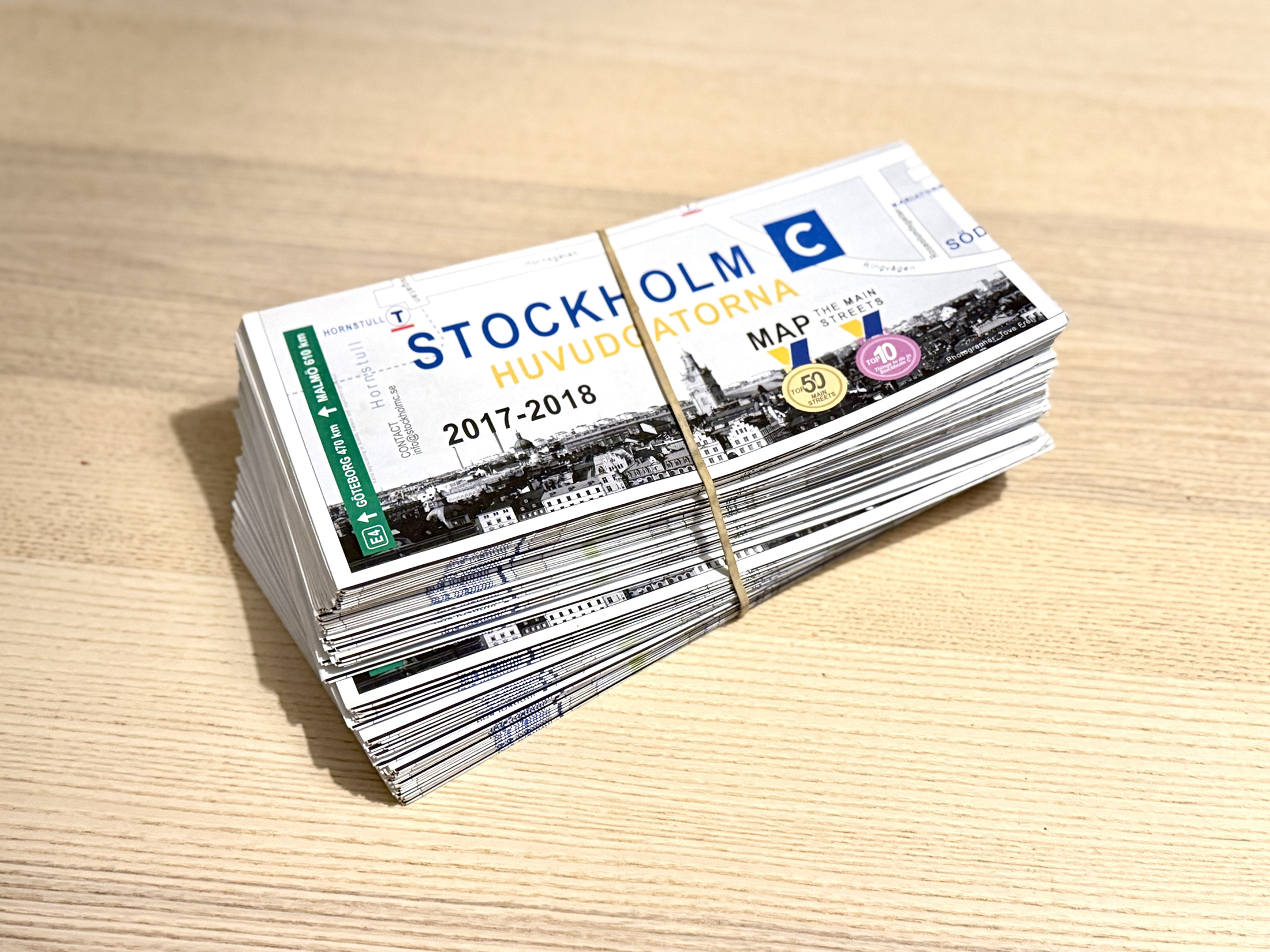 Dessa tankar inspirerade oss att skapa en lösning: en karta över tunnelbanesystemet i Stockholms innerstad. Under vår VD:s raster, på ett café, ritade Francisco den första skissen på en servett. Med sin erfarenhet som taxiförare kunde han förenkla det komplexa tunnelbanelandskapet – från 100 till 19 stationer – så att både lokalbor och turister snabbt ska förstå hur de smidigast tar sig fram och byter mellan stationer och stadsdelar. Vi kallar den för T-banekartan.