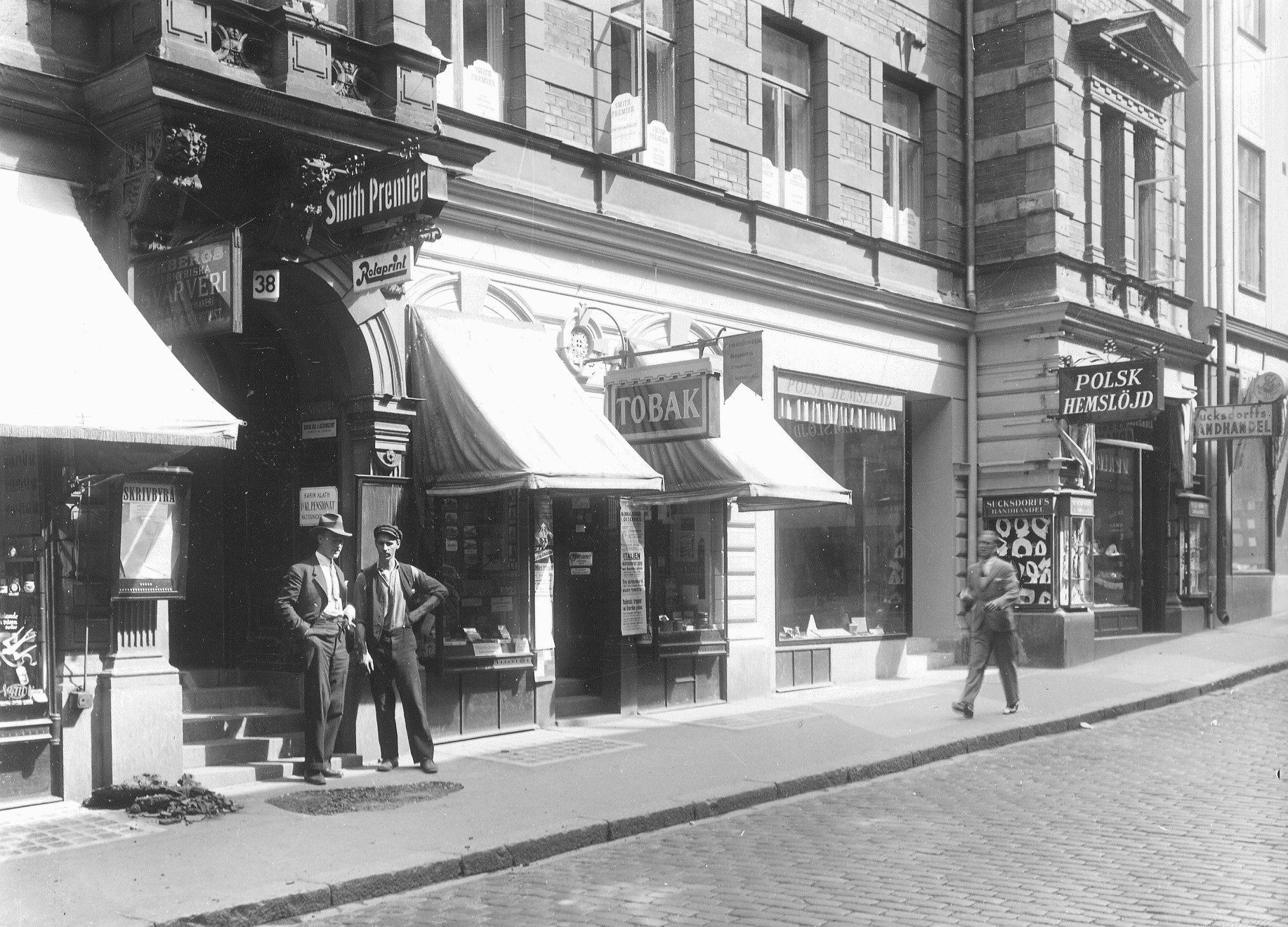 Hamngatan 38, kvarteret Hoven 1930-tal. Huset revs 1954 i samband med Norrmalmsregleringen